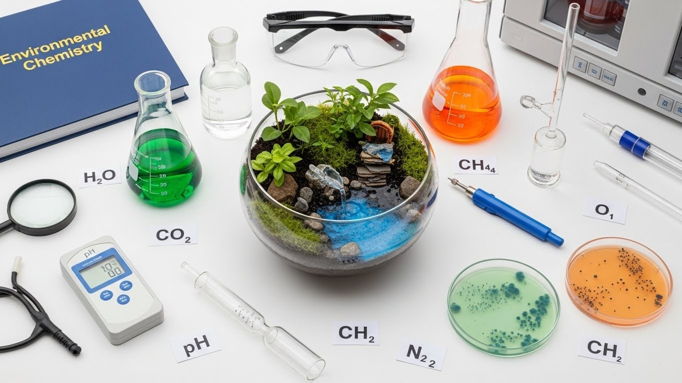 A laboratory course covering the sources, reactions, transportation, effects, and fates of chemical species in water, soil, and air environments. Laboratory experiments will analyze pollutants and elucidate fundamental principles of chemical equilibrium and kinetics applicable to the environment. Simple laboratory tests for the presence of nitrate (NO3 -), phosphate (PO43-), lead (II) (Pb2+), cyanide (CN -), and chloride (Cl -) ions will be carried out. Other tests for the identification of cations and anions will also be carried out.
